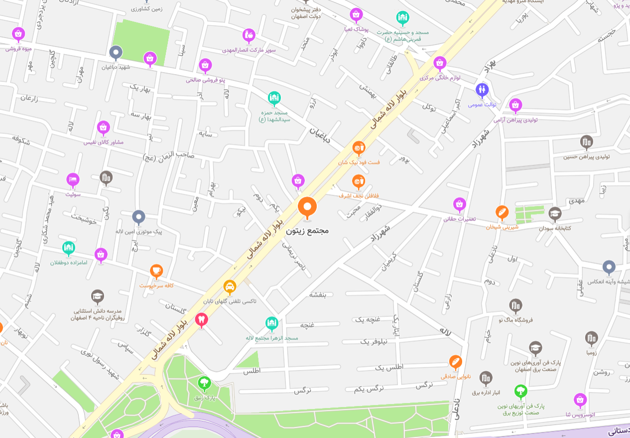 اصفهان , خیابان لاله شمالی , بعد از کوچه 11 , مجتمع تجاری زیتون , واحد اول سمت چپ